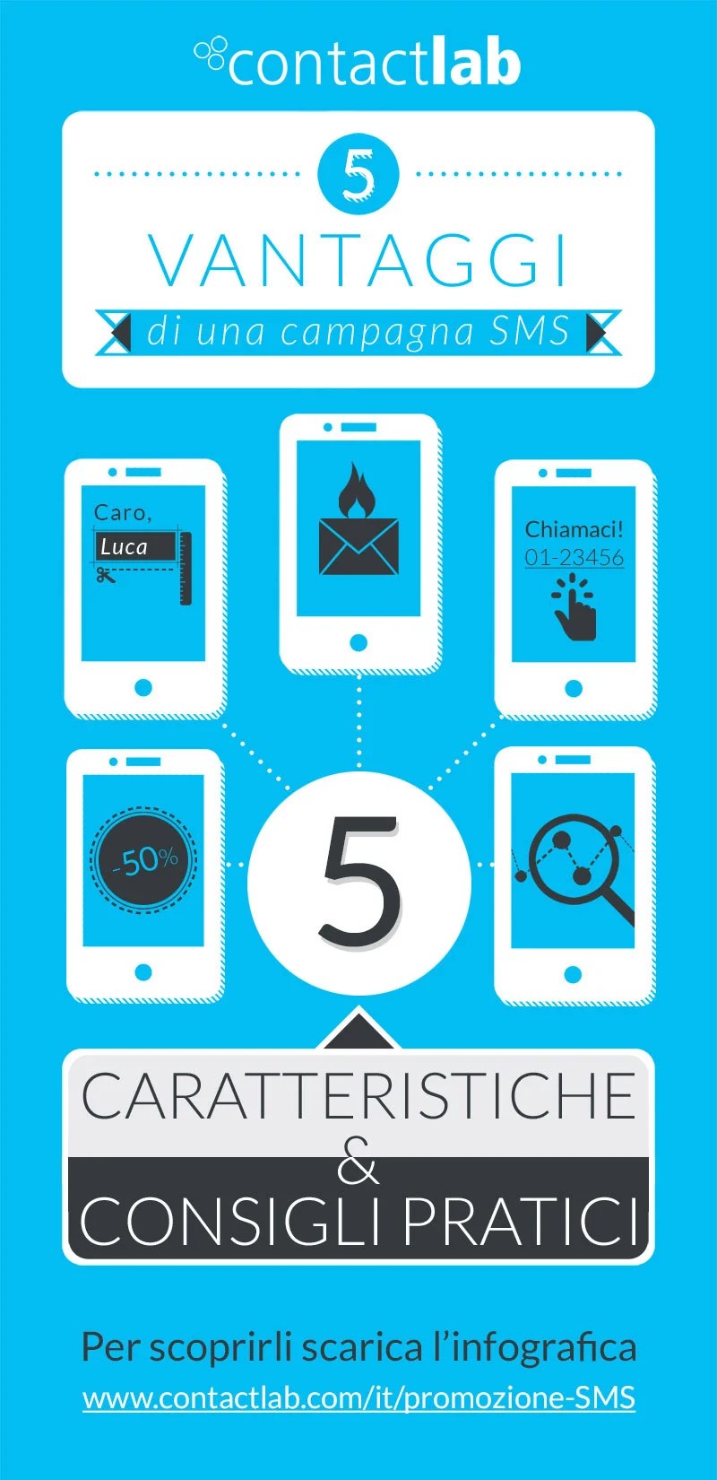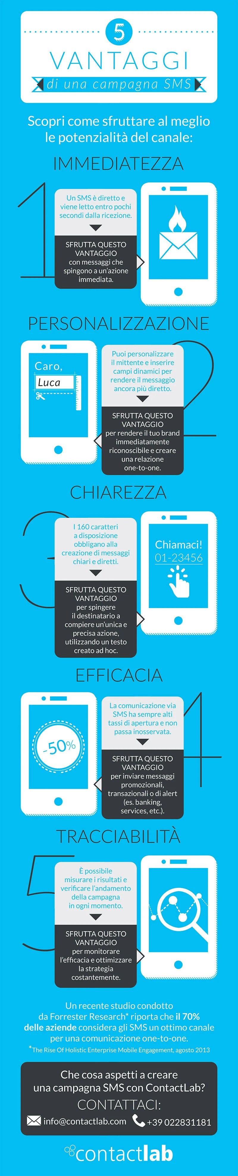 Digital adv to promote the 5 benefits of SMS marketing (short & extended version), for Contactlab.