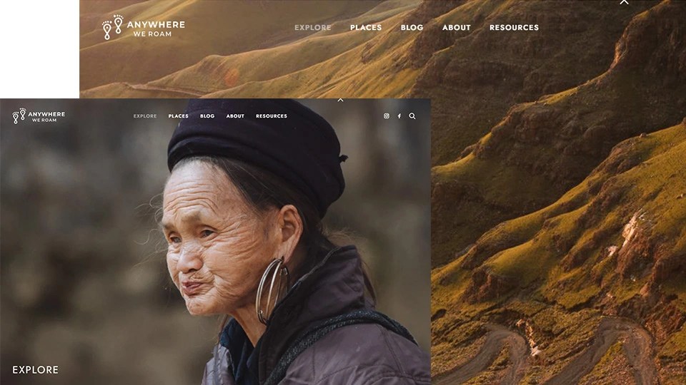 Fig. 1. Anywhere We Roam (2023). From the “Places” section, homepages dedicated to Morocco (on the left) and Iceland (on the right). [Web pages]. Respectively, available at: https://anywhereweroam.com/places/morocco/ and https://anywhereweroam.com/places/iceland/