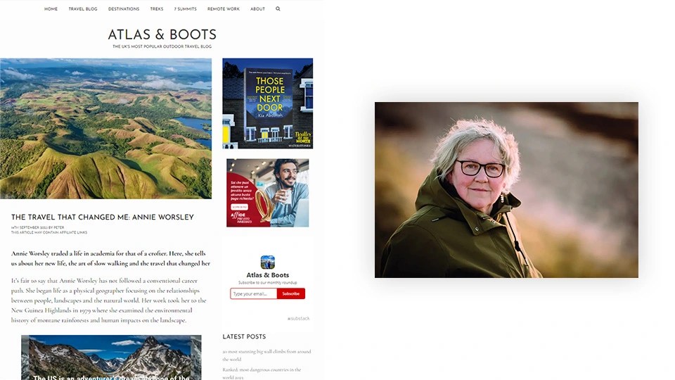 Fig. 4. Atlas & Boots (September 14, 2023). The travel that changed me: Annie Worsley. [Web page]. Available at: https://www.atlasandboots.com/travel-blog/annie-worsley-travel-that-changed-me/