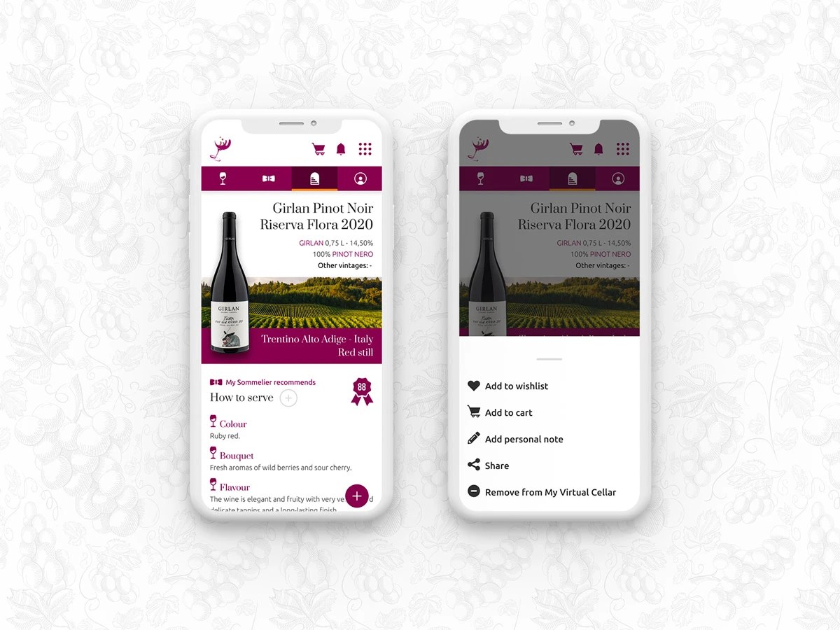 ⁘ My Virtual Cellar: users can create their virtual cellar by scanning wine labels.